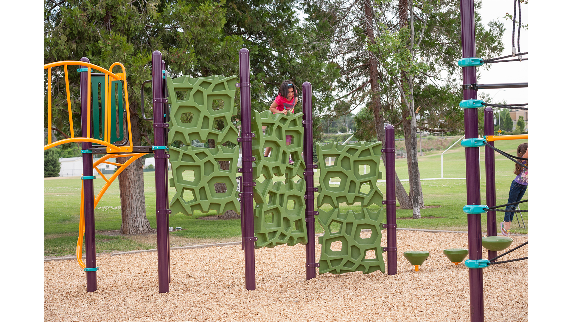 Patented GeoPlex® climbing ropes and panels can be transformed into a wide range of climbers, towers, towers with nets, and post-and-deck attachments for PlayBooster® playgrounds for kids ages 5 to 12. These abstract, geometric designs come in many colors to create your favorite look - natural, contemporary, space-ace, circus and much more!