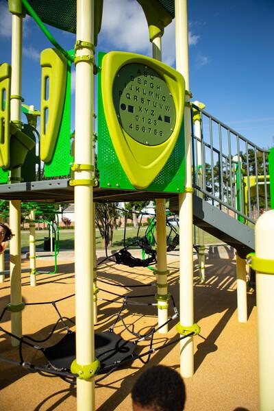 A sensory wonderland that encourages exploration, interaction and develops fine-motor skills for children of all abilities. Play on one or both sides. The Vibe® design is a stylish combination of perforated steel and playful rotomolded plastic that modernizes the traditional post-and-deck playsystem.Features