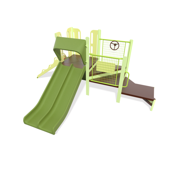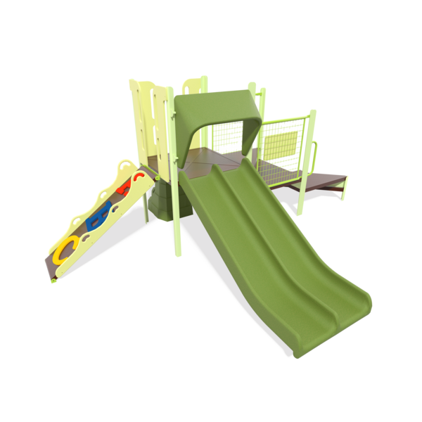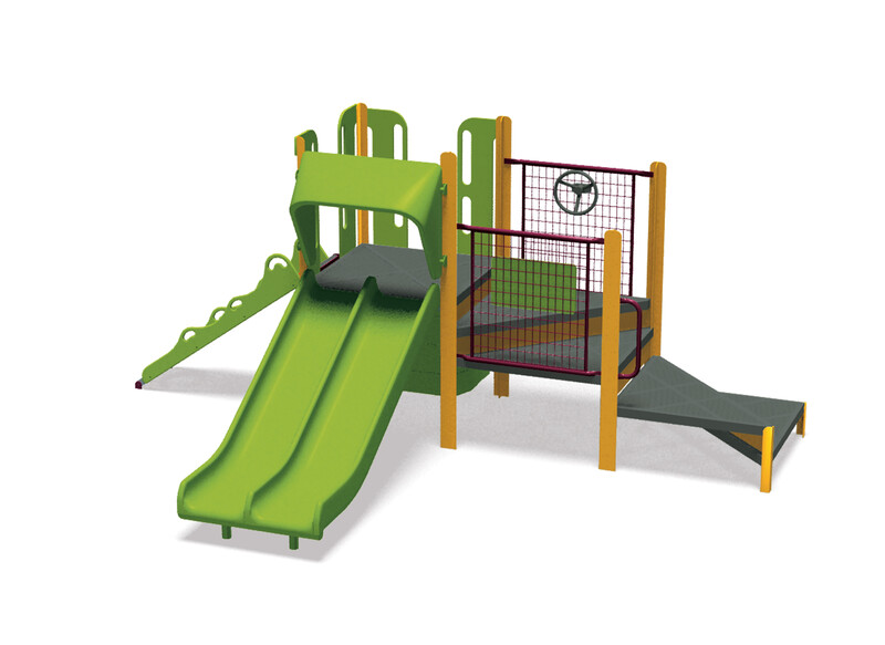 This is a fun playstructure for toddlers and preschoolers. They will enjoy climbing up and sliding down on these play events. This design is also available with other climber options, see Design 30.Features