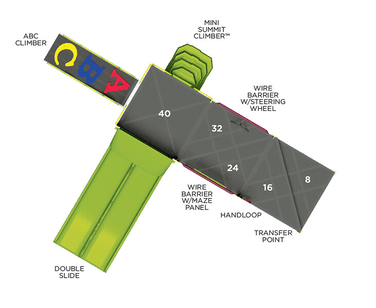 - Design 30 EZ includes the following components: ABC Climber, Double Slide, Handloop, Mini Summit Climber, Transfer Point, Wire Barrier with Maze Panel and Wire Barrier with Steering Wheel