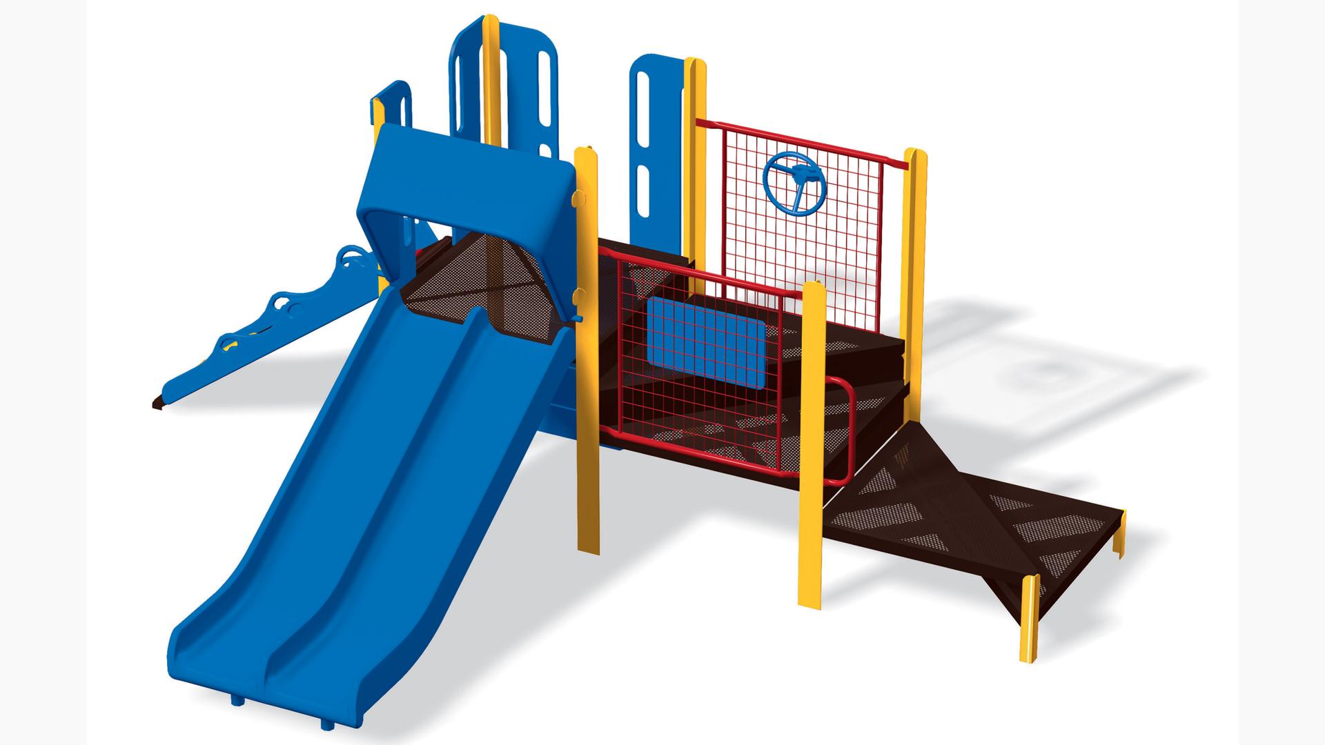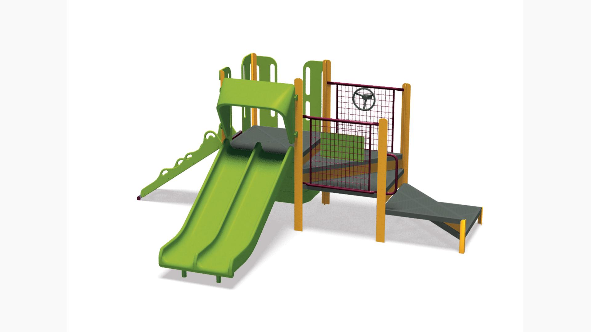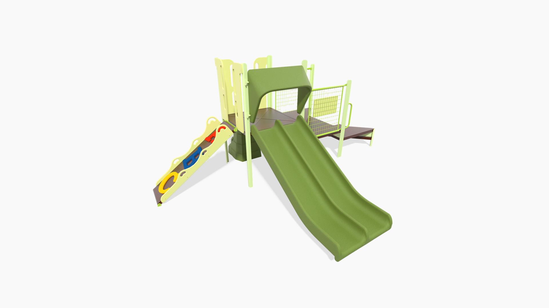 This is a fun playstructure for toddlers and preschoolers. They will enjoy climbing up and sliding down on these play events. This design is also available with other climber options, see Design 30.Features