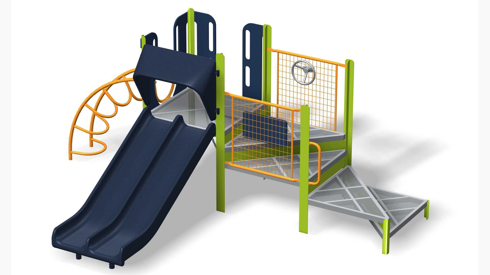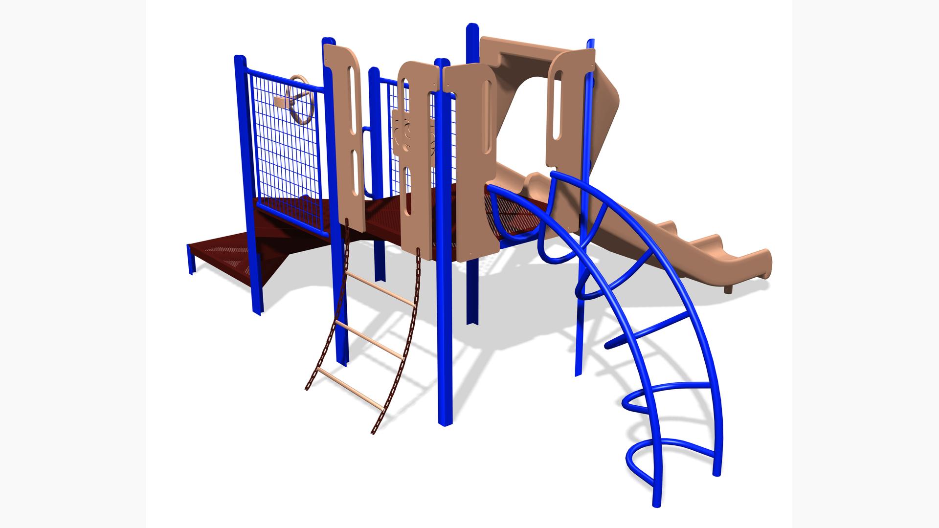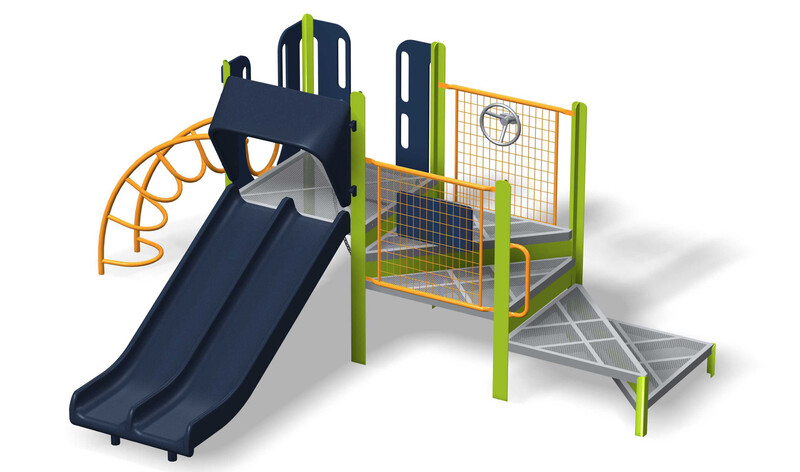 Up and down is the name of the game on this fun playground. You get affordable fun for toddlers and preschoolers learning the joys of physical activity. Plenty of fun play events in a great accessible structure. This design is also available with other climber options, see Design 30 EZ.