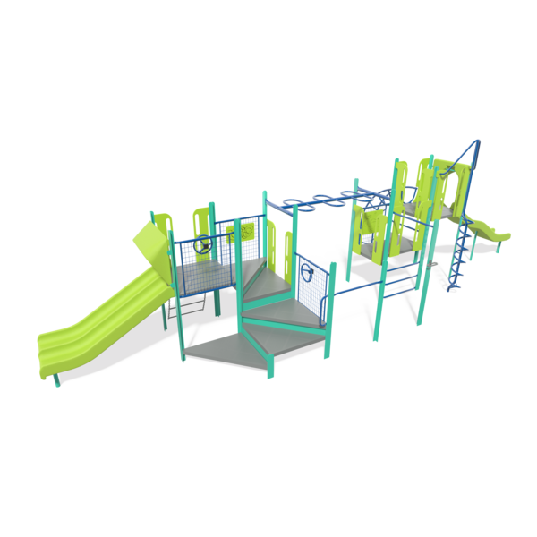 - Design 301 includes the following components: Chinning Bar, Corkscrew Climber, Double Slide, Handhold/Leg Lift, Handloop, Loop Arch Climber, Single Beam Loop Horizontal Ladder, Single Wave Poly Slide, Transfer Point, Turning Bar, Vertical Ladder, Wiggle Ladder, Wire Barrier with Maze Panel, Wire Barrier with Monkey Panel and Wire Barrier with Steering Wheel (2)