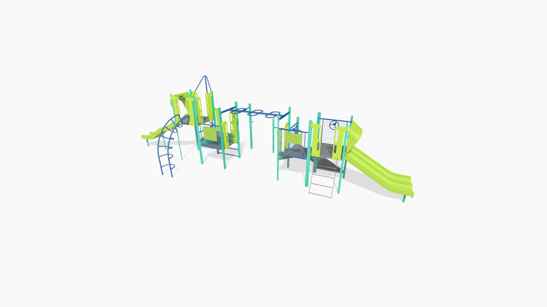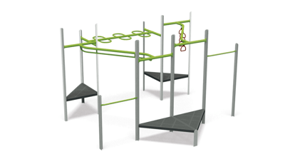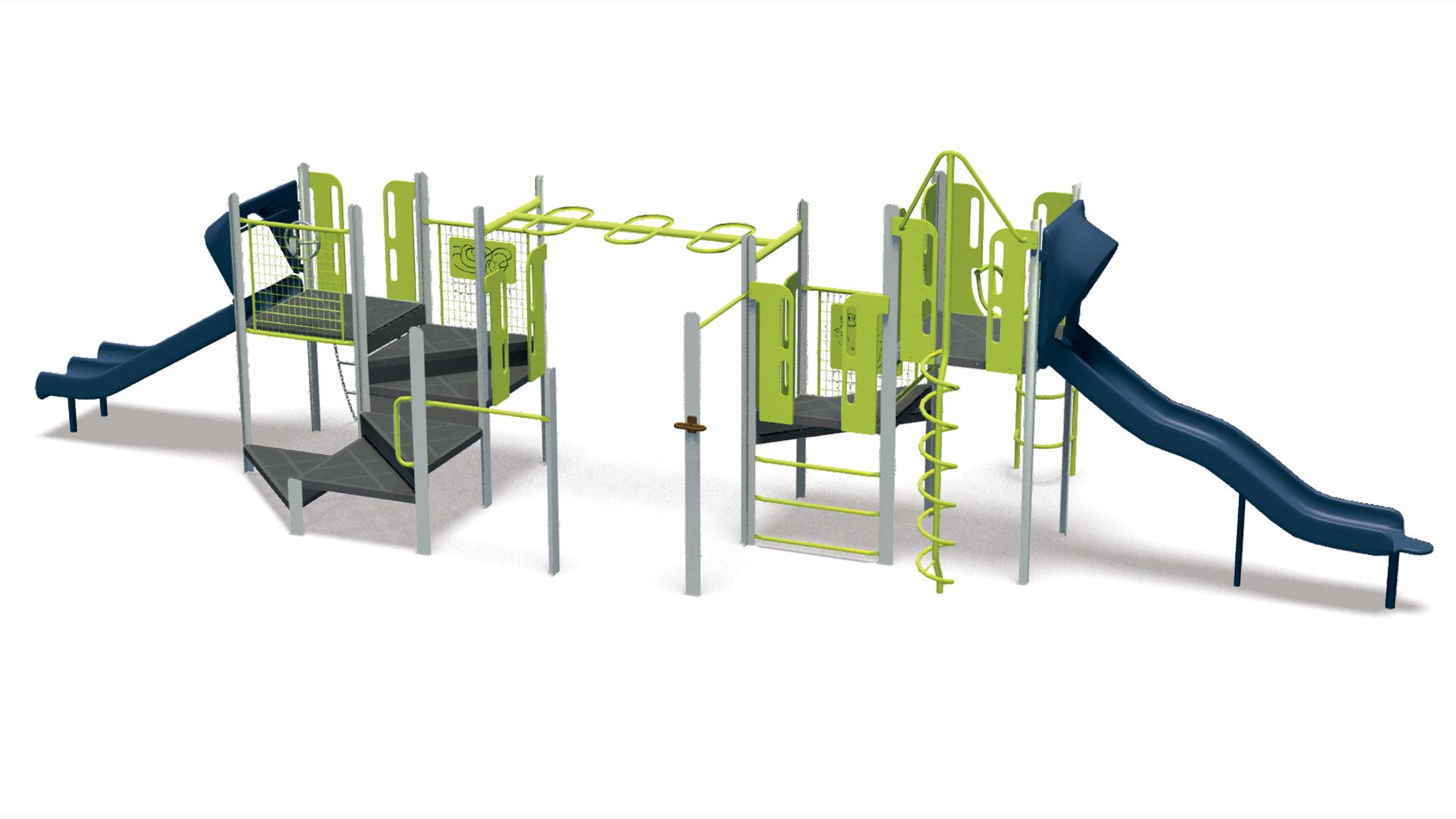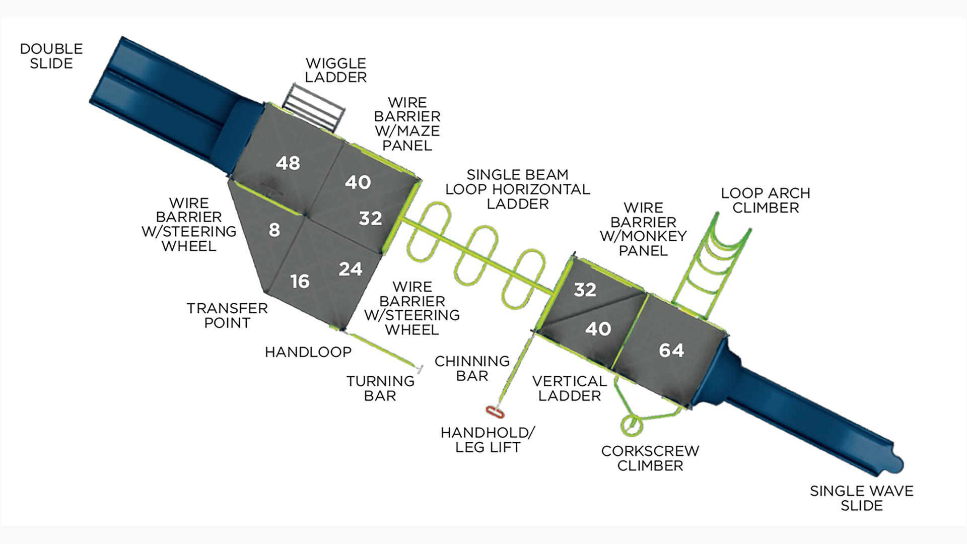 - Design 301 includes the following components: Chinning Bar, Corkscrew Climber, Double Slide, Handhold/Leg Lift, Handloop, Loop Arch Climber, Single Beam Loop Horizontal Ladder, Single Wave Poly Slide, Transfer Point, Turning Bar, Vertical Ladder, Wiggle Ladder, Wire Barrier with Maze Panel, Wire Barrier with Monkey Panel and Wire Barrier with Steering Wheel (2)