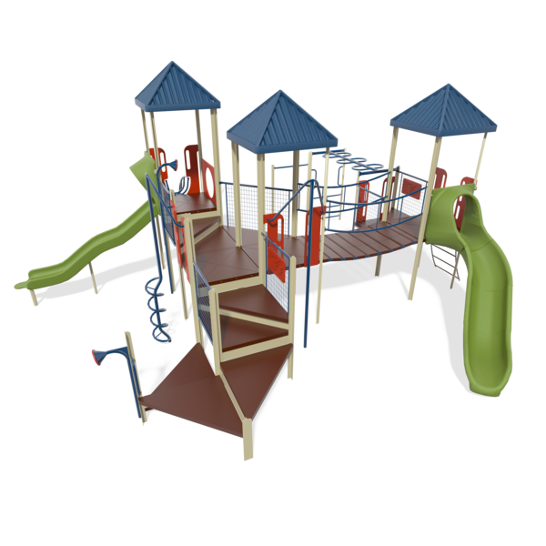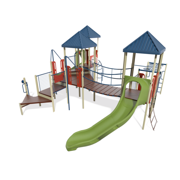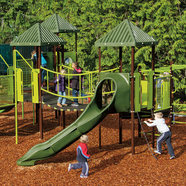Here is super fun play - on a big scale! This playground is for kids ages 5 to 12. This affordably priced playground features slides, climber, play panels and more for elementary-aged kids. This complete phasable design contains all components available in Phase 1 and 2.Features