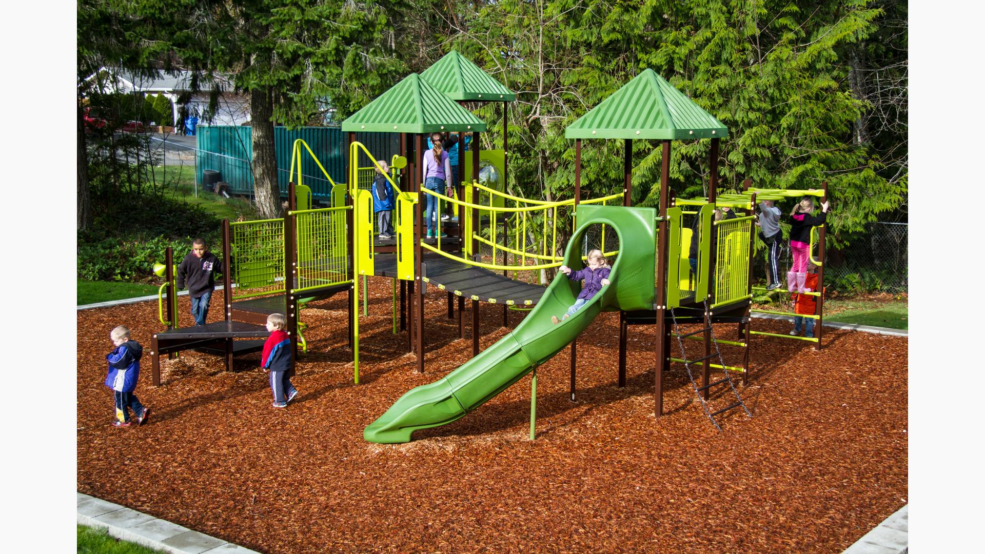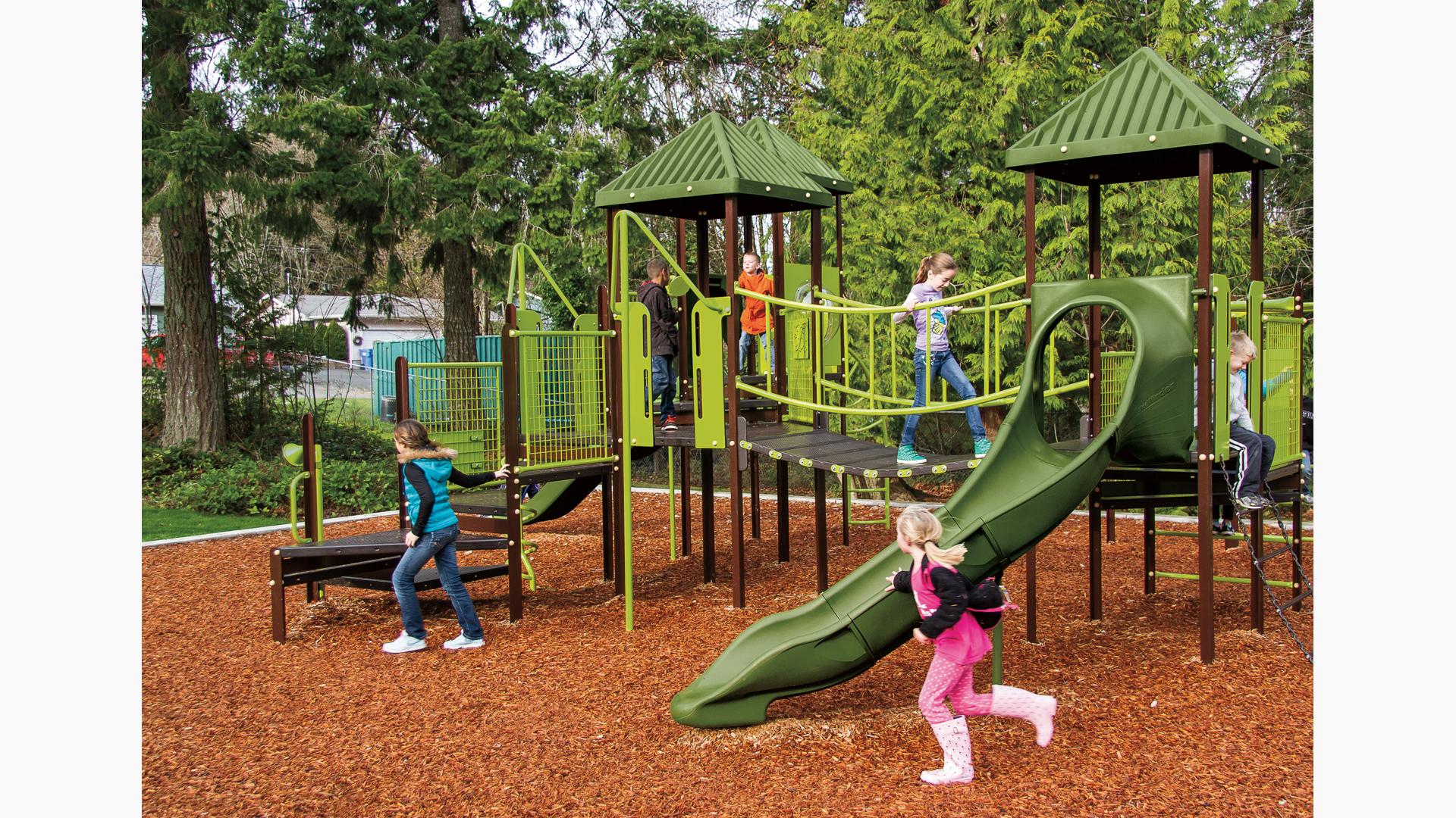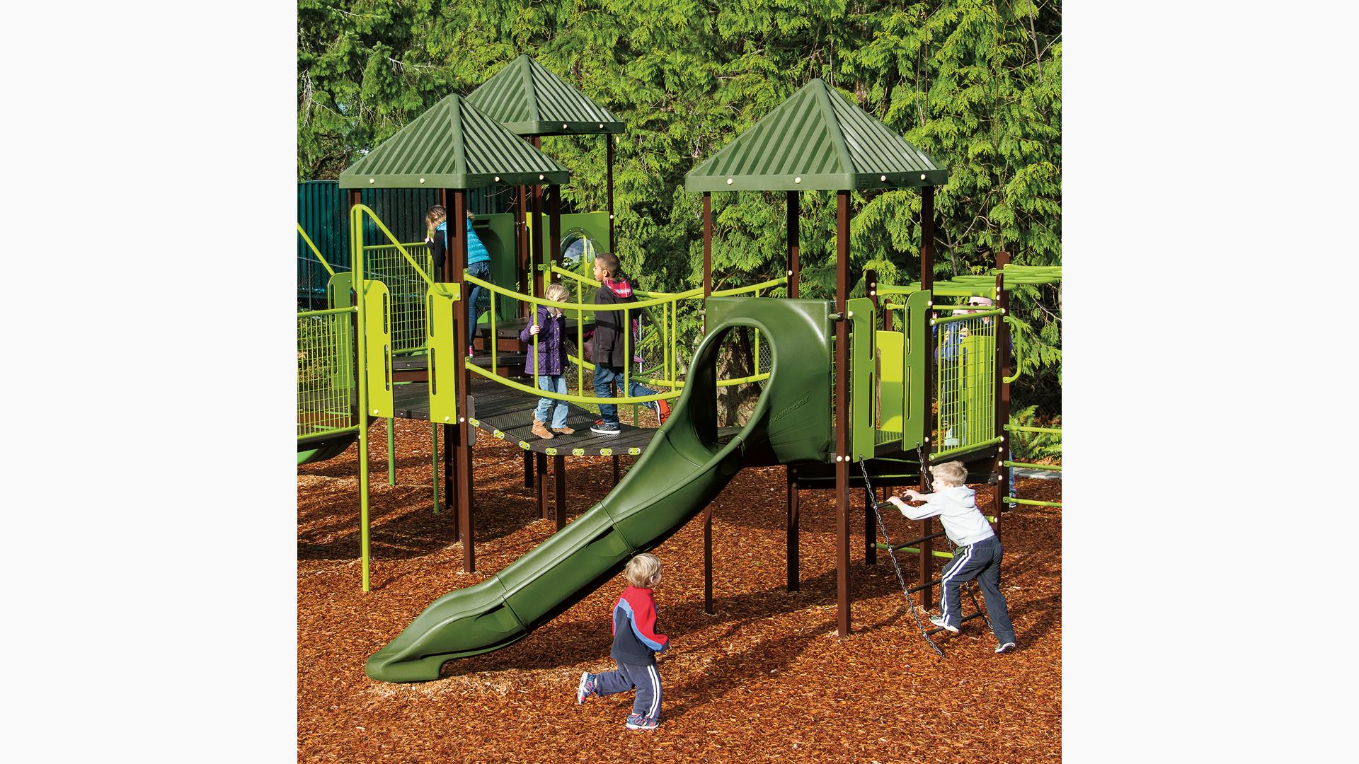 Here is super fun play - on a big scale! This playground is for kids ages 5 to 12. This affordably priced playground features slides, climber, play panels and more for elementary-aged kids. This complete phasable design contains all components available in Phase 1 and 2.Features