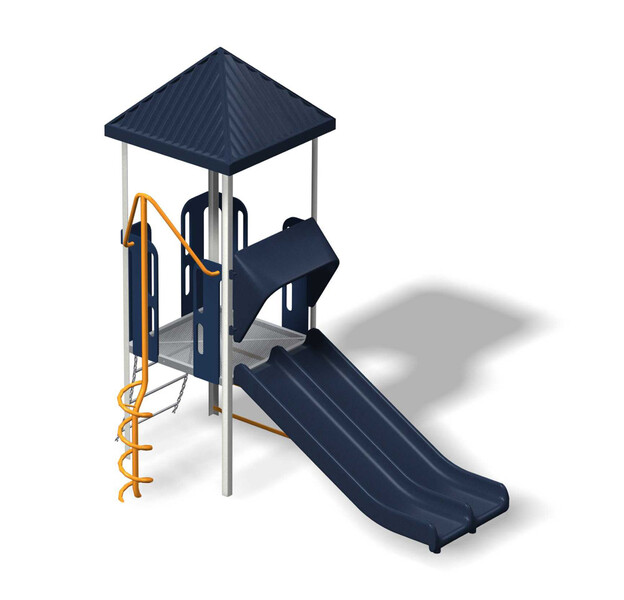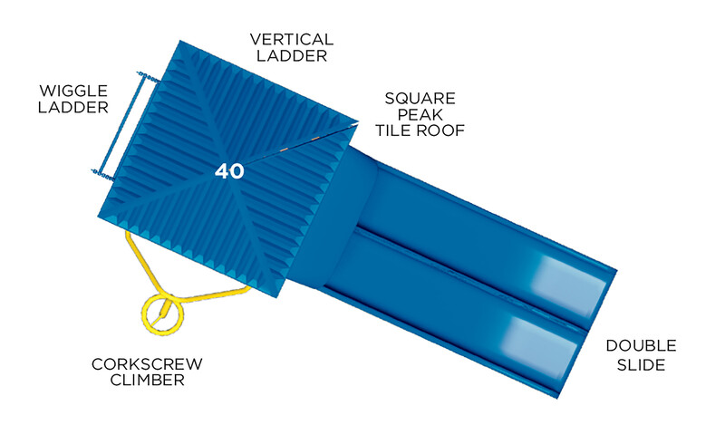 • Design 32 includes the following components:  Corkscrew Climber, Double Slide, Square Peak Tile Roof, Vertical Ladder and Wiggle Ladder.
