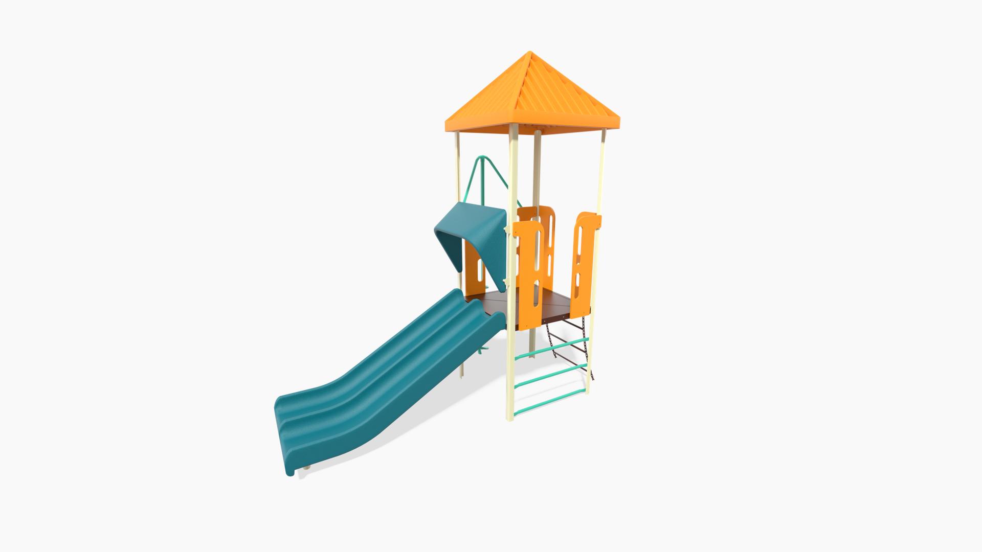 This compact design is an affordable choice for little climbers. When you are looking for a fun playground for toddlers and preschoolers, you’ll find plenty of fun play events here. This design is also available with other climber options, see Design 32 EZ.