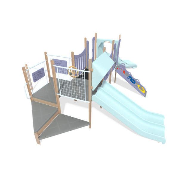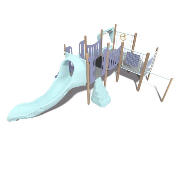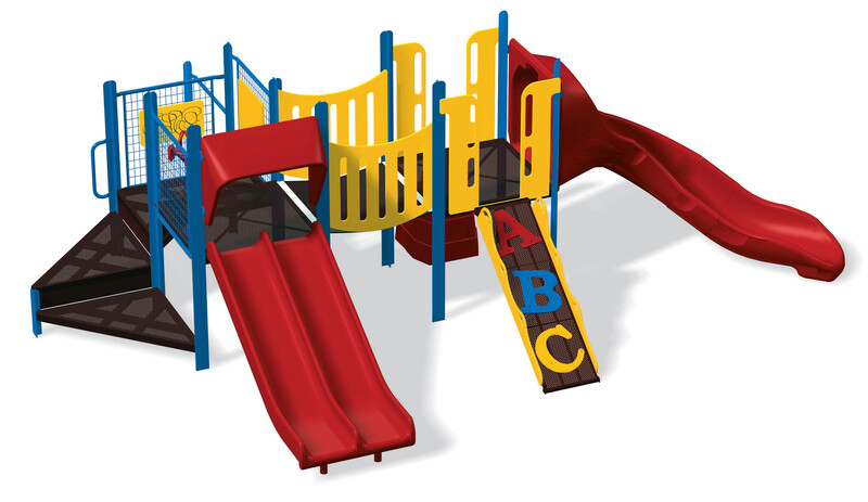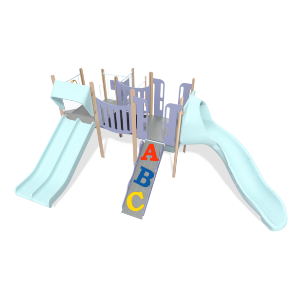 Sliding the day away is the theme of this fun playground. This is a perfect playground design for toddlers and preschoolers. This design is also available with other climber options, see Design 33.Features