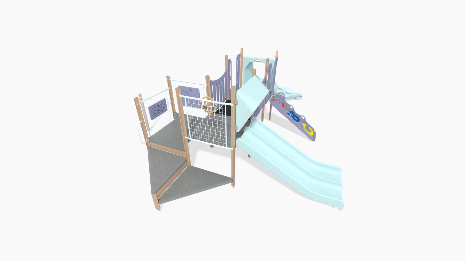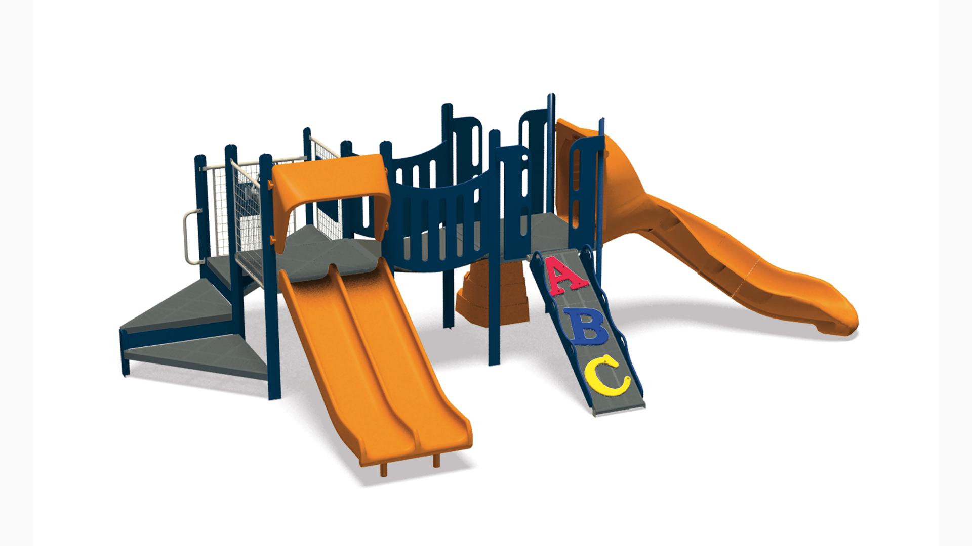 Sliding the day away is the theme of this fun playground. This is a perfect playground design for toddlers and preschoolers. This design is also available with other climber options, see Design 33.Features