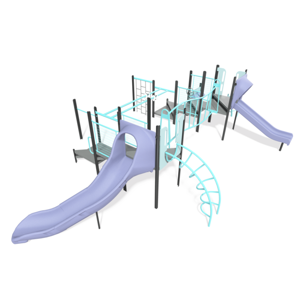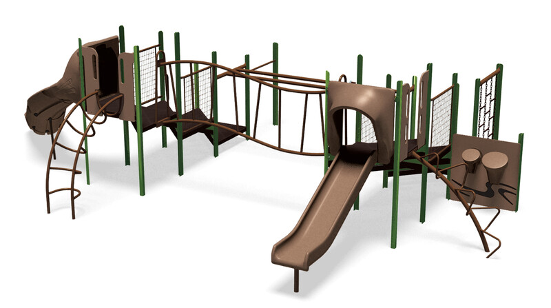 This linear structure is great for a narrow space. With two slides and multiple climbers, you don't have to pay more for a great play experience.Features