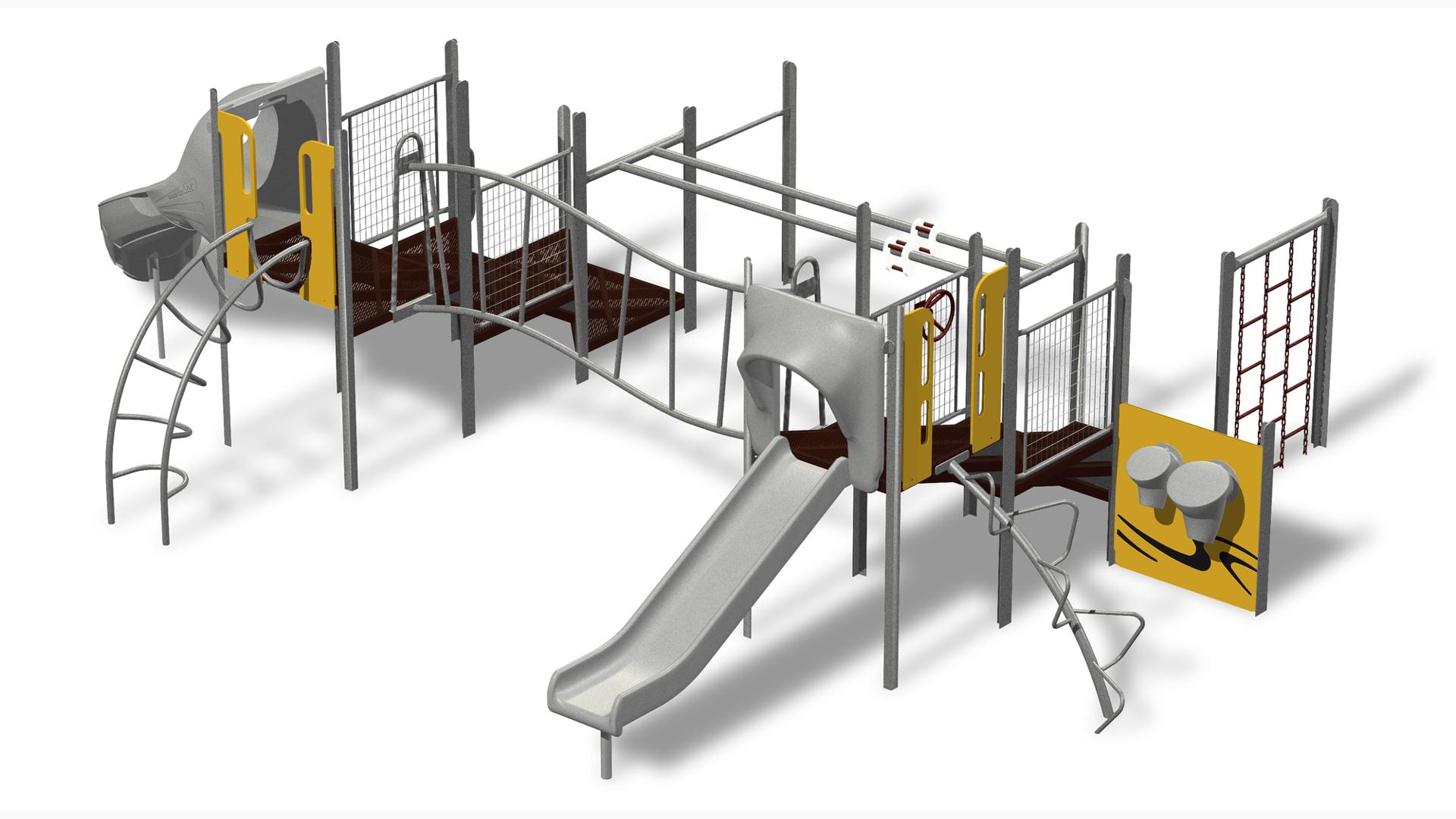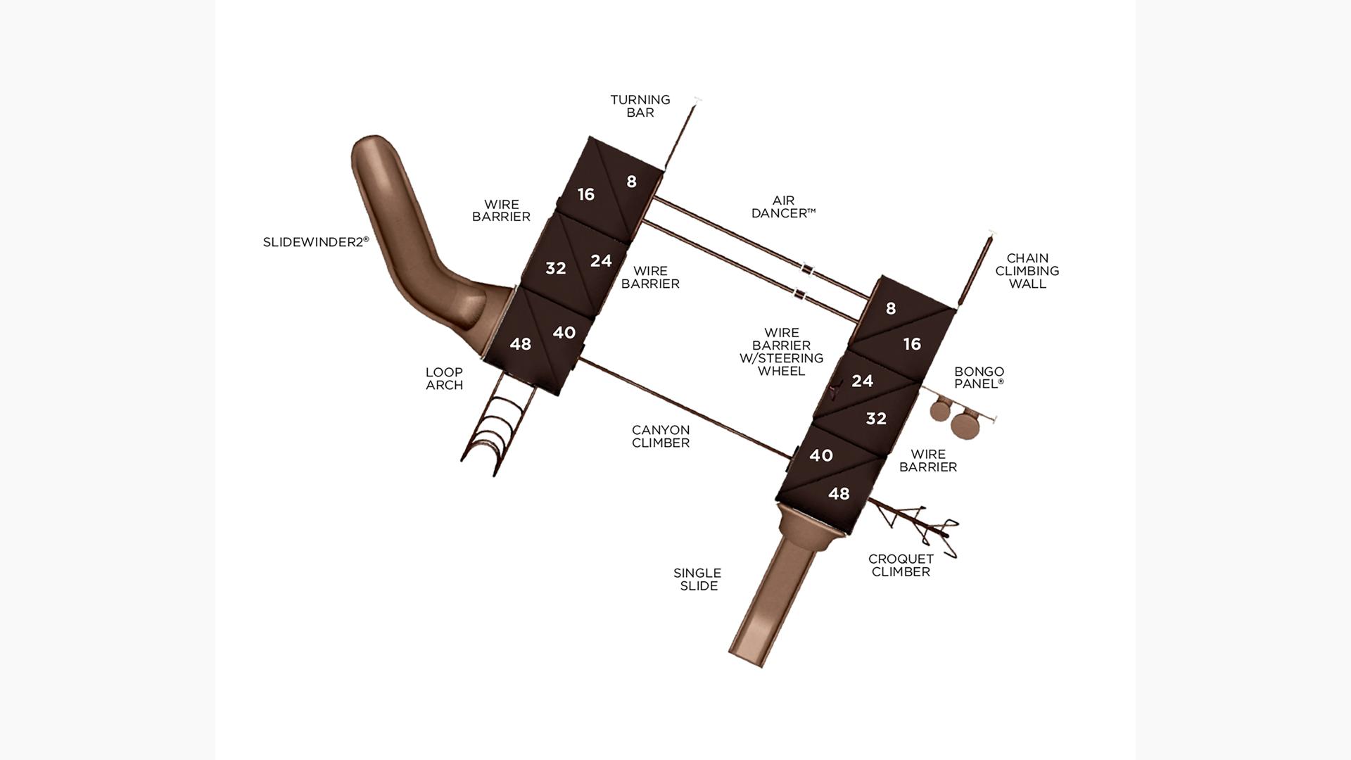 - Design 601 includes the following components: Air Dancer™ Overhead Event, Bongo Panel®, Canyon Climber, Climbing Wall, Croquet Climber, Handloop, Loop Arch Climber, Single Slide, SlideWinder2, Turning Bar, Wire Barrier (3) and Wire Barrier with Steering Wheel