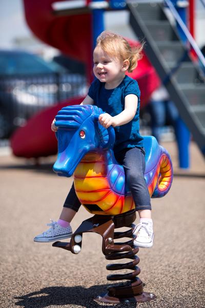 The Whimsy Rider™ brings springy, bouncy fun to the playground for younger kids. Allows kids to bounce along and spark their imaginations.Features