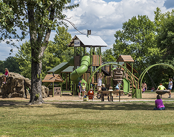 Orono Park in Elk River, MN, for example, is a nature inspired playground that mimics the surrounding environment and offers activities for both kids and adults. In addition to the main play structure, there are nature-inspired rock climbers, swings and a tower tree house. The park also includes the HealthBeat outdoor fitness system, so parents and caregivers can work out while keeping an eye on their kids.